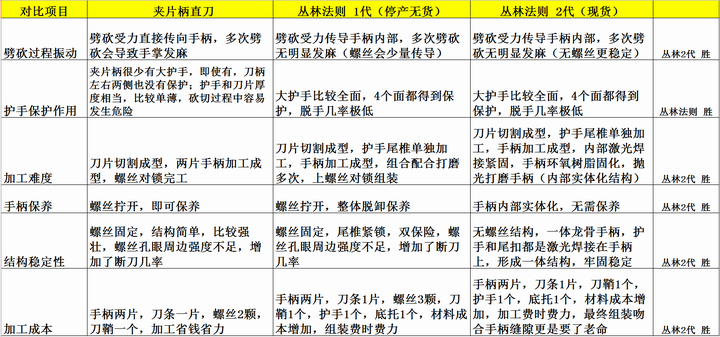 那么费那么多精力,做这种结构有什么好的呢? 这里就和夹片手柄的刀做下对比(下图),看完就了解我们到底给你了什么,你付出的金钱是不是得到了同比例的产品!